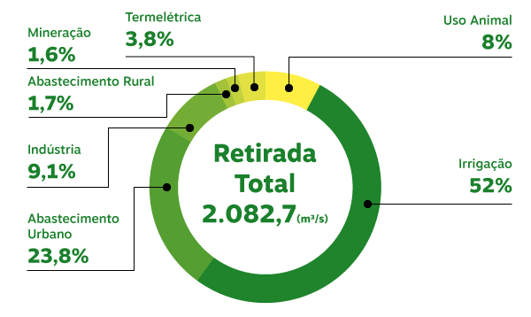 A utilização de água no agronegócio é indispensável em praticamente todas as suas operações, seja na agricultura, na pecuária ou na produção florestal, por exemplo. Isso fica evidente quando analisamos os dados de consumo do setor no Brasil. Segundo uma pesquisa do Instituto Brasileiro de Geografia e Estatística (IBGE), divulgada em maio de 2020, o agronegócio respondeu por 97,4% do total de água consumido no país em 2017. Na prática, isso significa que cada R$ 1 de valor bruto adicionado à economia nacional exigiu o consumo de 6,3 litros de água.